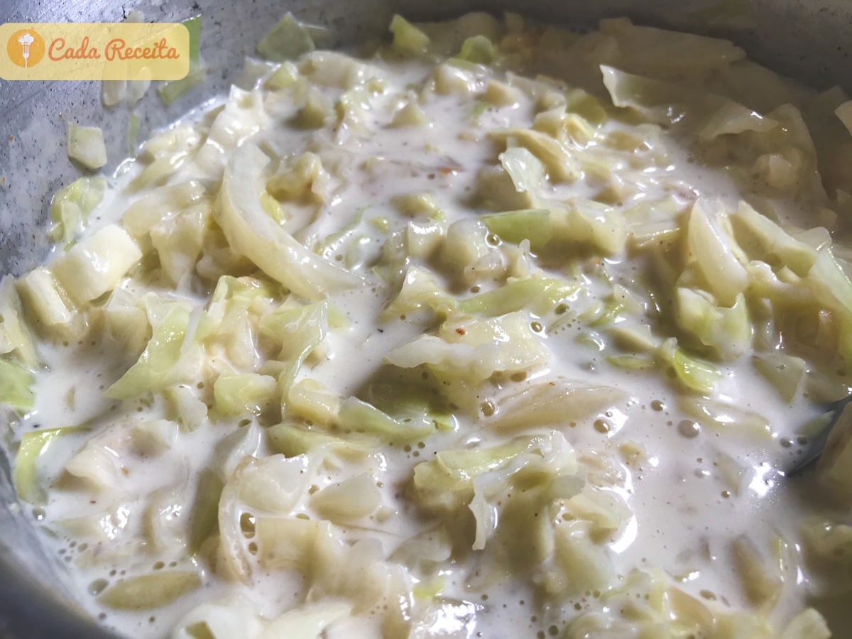 Junte o repolho ao molho branco corrija o sal e adicione a noz. A minha conta O meu livro de receitas.